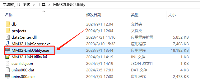 路径如下:灵动微_工厂测试\工具\MM32LINK-Utility\MM32-LinkUtility.exe。文件夹内有两个 exe 注意不要错点。