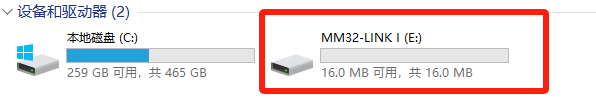 检查计算机是否新增 MM32LINK I 盘符,如下图所示: