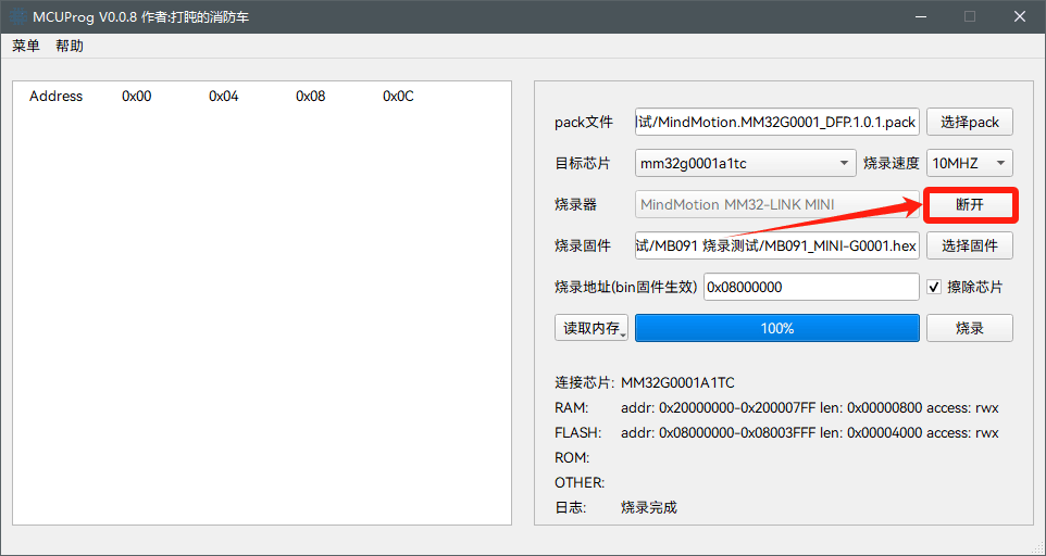 MB091_MINI-G0001.hex - 烧录地址默认为